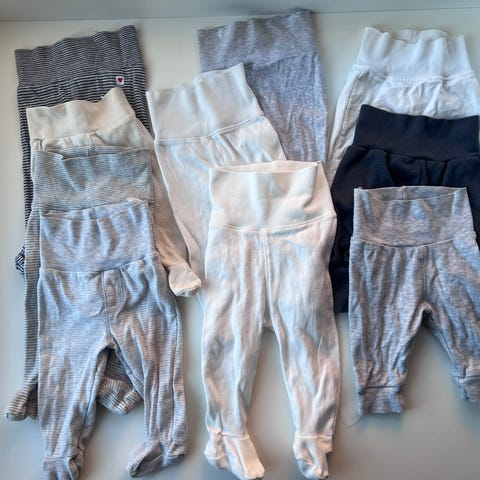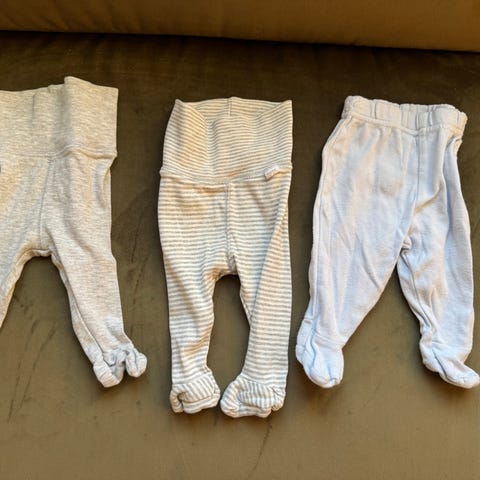 Sett med 5 bukser med føtter i størrelse 50 til jente fra H&M.