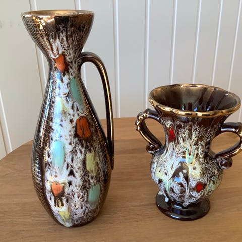 Selger en samling bestående av 3 håndmalte keramikkvaser/kanner, sannsynligvis fra 1930-tallet, produsert av Ditmar Urbach.