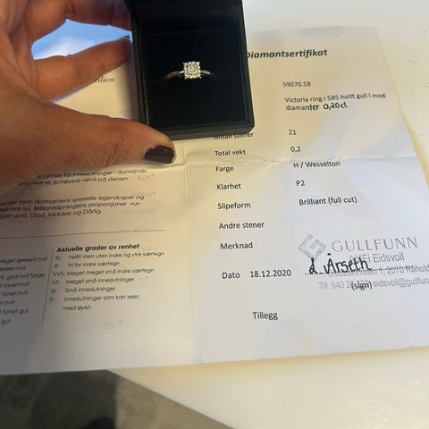 Diamantsertifikat medfølger.
