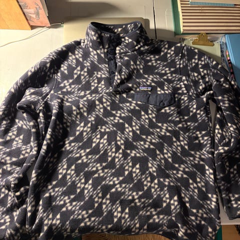 Er lite hull på høyre side lomme og på venstre er det et par cm søm som har løsnet.