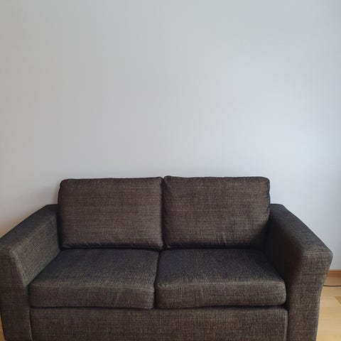 To like store sofaer i mørkebrun imitert skinn. Gode å sitte i. Noen synlige merker, men mye sofa igjen gis bort mot rask henting.