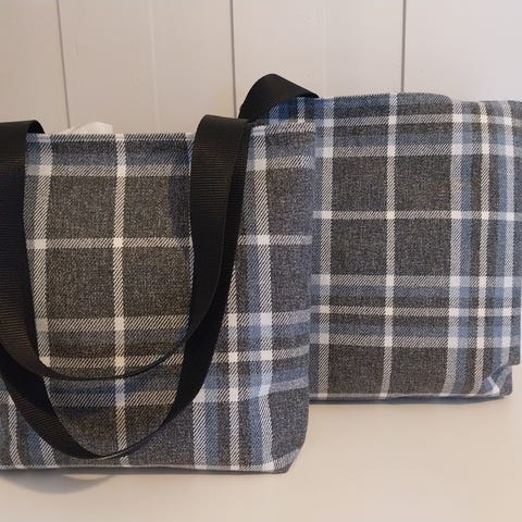 Klassisk veske som er lett å matche alle antrekk med. Fra Lexington, kraftig bomullskanvas med kanting og stropp i skinn. Stroppen er justerbar. Magnetlukke. Foret med bomullsstoff med logotrykk og innvendig glidelåslomme i hovedrommet. Måler ca 24x20 cm. Lite merke på undersiden, se bilde. Ellers meget pent brukt.