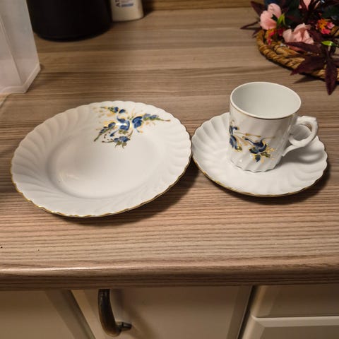 2 sett Porsgrund 2 sortering til salgs. 10 kopper og asjetter. Pent brukt. Må hentes. Det hvite heter Porsgrund Bogstad