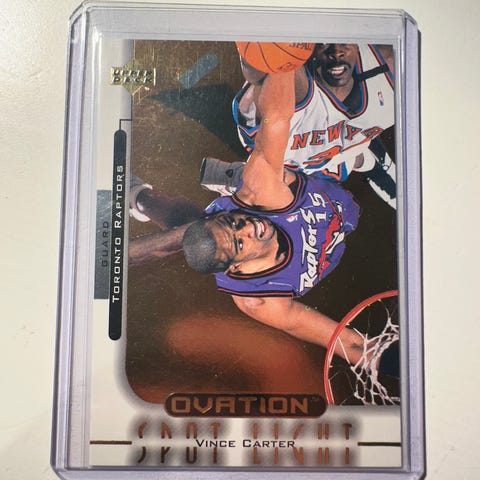Vince Carter basketballkort! Selges som vist på bilder. Strøkent basketkort! Insert fra Topps.