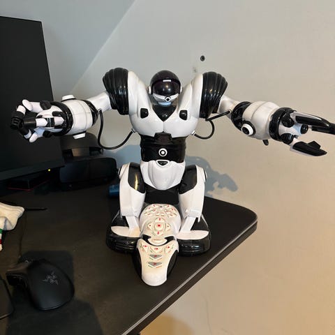 VTech InnoTab robot leketøy i blå og hvit farge. Passer for barn, laget i plastmateriale. Designet som en interaktiv robotfigur.