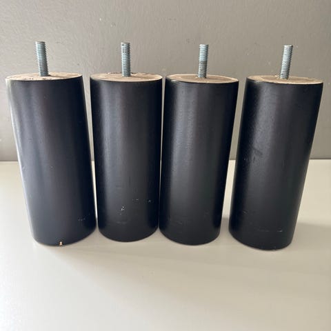 Skeidar sengeben laget av tre med svart finish. De er 10 cm høye.
