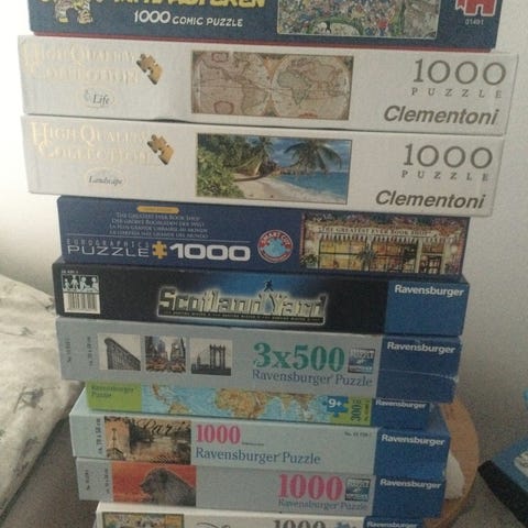 To er helt nye med plasten på, resten puslet 1-2 ganger.