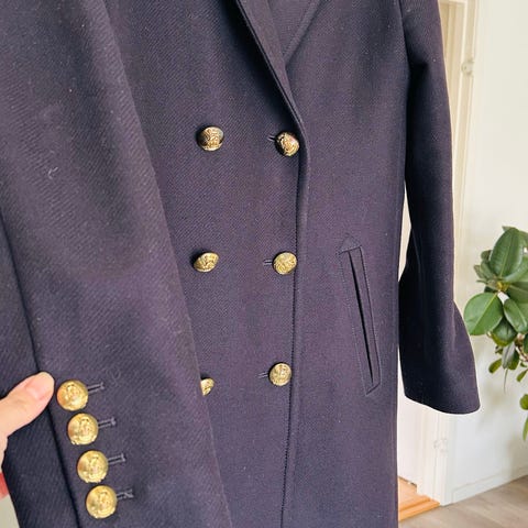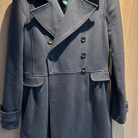 Burberry kåpe i svart farge, laget av ullmateriale. Kåpen er designet for damer og har størrelse 36. Den har dobbelspent knappelukking og et foret innvendig lag for ekstra komfort.kjøpte denne i Firenze Italia .