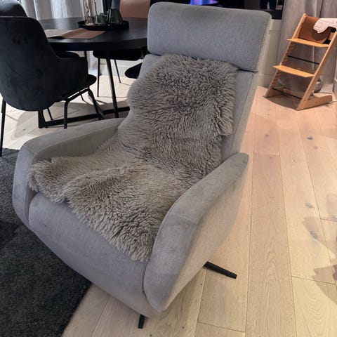 Veldig behagelig og fint holdt grønn skinn lenestol med puff selges. Må hentes på Bislett.