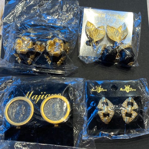 Vintage retro lot Øredobber klips /stiks Gullfarget med dekorative steiner