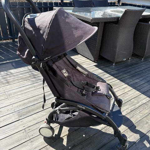 BABYZEN Yoyo barnevogn i sort farge. Kompakt og lett design med justerbar ryggstøtte og fempunktssele. Utstyrt med originalt regntrekk, og med oppbevaringspose til vognen. oppbevaringskurv under setet, ned et lite slitasje hull (se bilde) men påvirker ikke bruken (er et orginal hull som skal være der på samme størrelse.