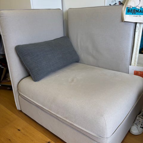 Setepute og ryggpute i dun. Trekket er i fløyel.