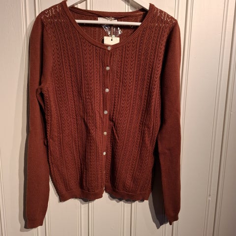 Rysjevolang nederst og nederst på ermer. Det er Glittertråd i strikken som gjør den ekstra pyntet.
