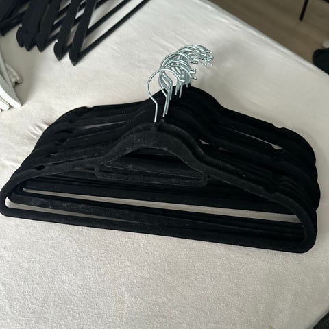 Fine kleshengere som fungerer som de skal, dog med bruksmerker. Litt klistremerker etc- men tror de skal bli fine med en liten vask🎉 20 stk for 250