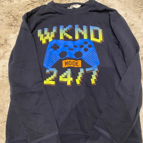 Liten klespakke med tre pent brukte gensere med ulike motiver.