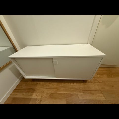 Litt skiten, støvete og litt skrape merker oppå, men solid skohylle.