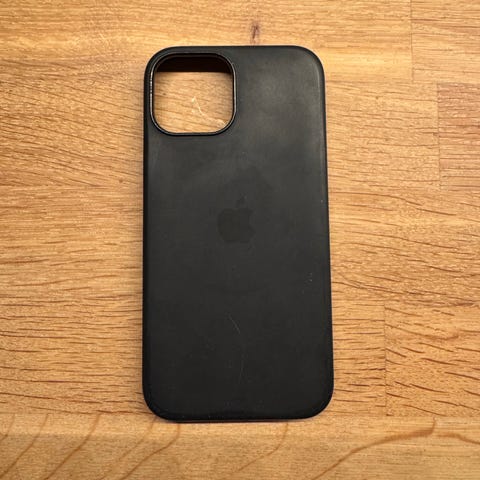 Er skade på toppen men telefonen holdes likevel godt på plass og merkes ikke særlig
