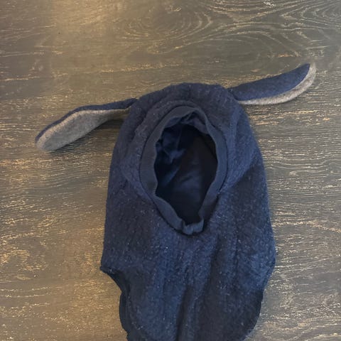 Mørkeblå balaclava / lue fra Huttelihut i strl 68/74. Nydelig lue med kaninører 🐰