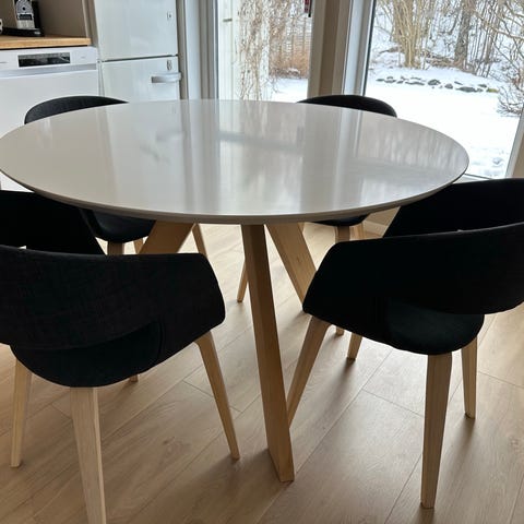 Rund bord med fire stoler