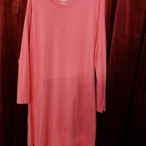 Beige, blomstret Gudrun Sjödén Hverdagskjole i størrelse XL. Jersey av 50% bomull og 50% modal, med organisk bomull. Lange armer og to lommer. A- fasong. 103 cm lang. 110 cm rundt brystet.