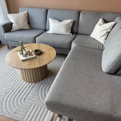Sofaen har vært i vårt eie i 4 år og er veldig pent brukt. Den har vært godt tatt vare på i et rolig hjem, og fremstår med minimal slitasje. Her får du en nesten ny følelse til en brøkdel av prisen!