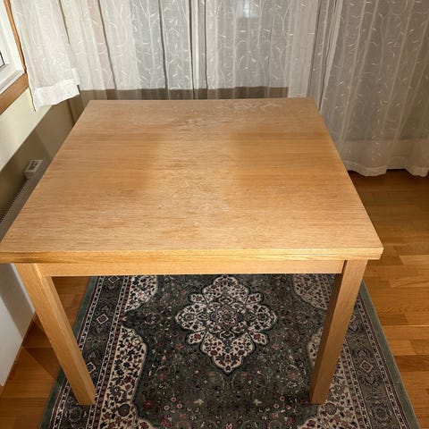 Gis bort gratis: lite kjøkkenbord fra IKEA. Alle deler er på plass og fungerer. Det er noen små skader på bordplaten.
