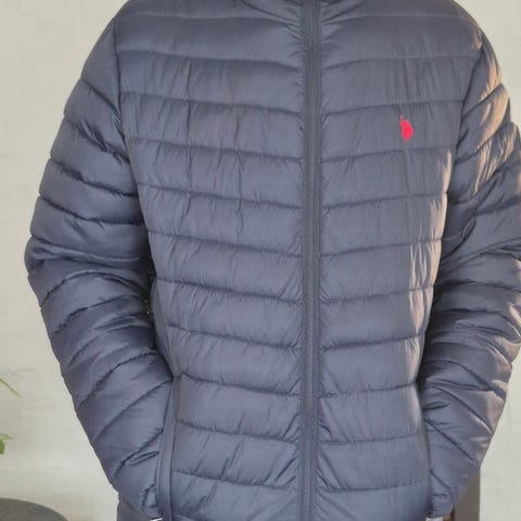 Ralph Lauren FLX jakke i blå farge, størrelse M. Jakken er laget av ull m d "boblestoff" i front og har hel glidelås. Den kombinerer materialer for komfort og varme, egnet for både innendørs og utendørs bruk. Kjøpt hos Follestad