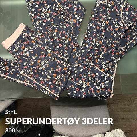 Underdel knapt brukt. Noen nupper under armer på genser. 12% ull, resten polyester. Selges samlet for 290 kr.