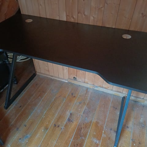 To stk kontorstoler selges for 100kr pr stk. Lite kontorbord følger med til 50kr. Bord måler H: 57cm, B: 70cm. Alt selges samlet for 200kr