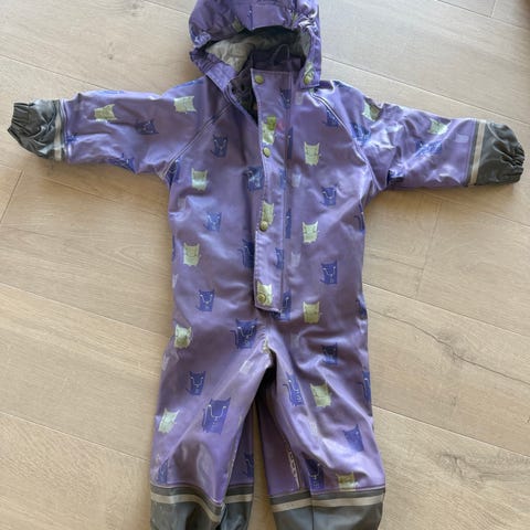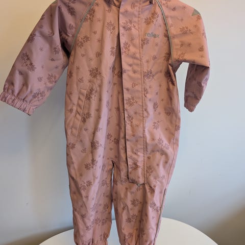 Har vært brukt til et barn i ca en sesong. Er litt slitt på knærne og bak, samt at det er en liten rift bak. Se bilde.