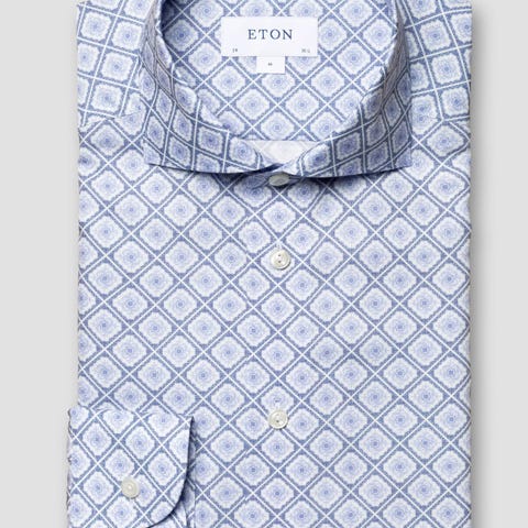 Eton skjorte i oransje og hvit farge, laget av bomull. Skjorten har størrelse XXL og er designet for menn.