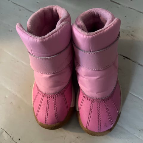 Kamik barnevintersko for jente i rosa farge. Skoene har en slitesterk svart såle og justerbar stropp over vristen. Designet for å gi beskyttelse og varme til barnets føtter i vinterforhold.