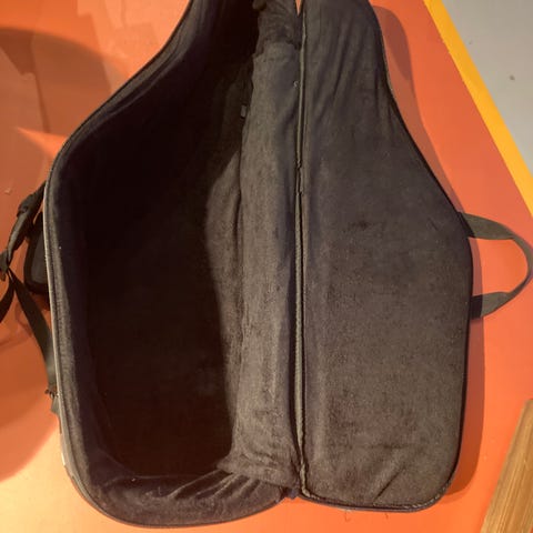 Solid og behagelig softbag/gigbag til tenorsax. Helt uten bruksmerker eller slitasje. Håndtak for bæring vannrett, loddrett (f.eks på bussen), over skulder eller på ryggen. Tykk og god padding i stropper og hovedrom. Romslig lomme til oppbevaring. Kommer med futteraler til hals og munnstykke, som fraktes trygt i klokkestykket på instrumentet.