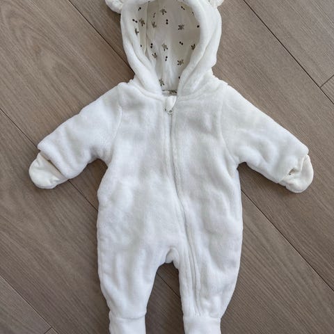 Newbie dress med ører i teddystoff i størrelse 62, beige farge. Nydelig og myk. Passer for både jenter og gutter.
