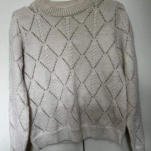 Hjemmestrikka genser med hjertemønster. Strikket i drops snow (100% ull). Ca størrelse S.
