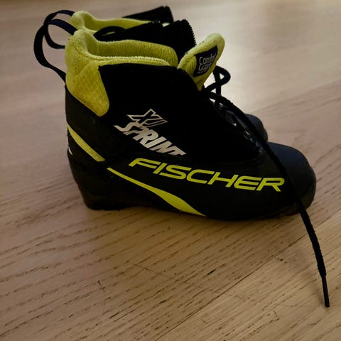 Fischer skisko med svart og gul farge i størrelse 31. I god stand. God komfort for barnet. Et godt utgangspunkt for mange vellykkede skiturer. Må hentes