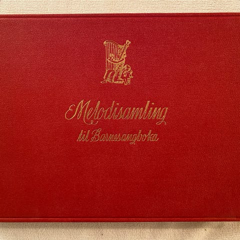 Vakker og stemningsfull Melodiboken med sort hard perm og gulltrykk.