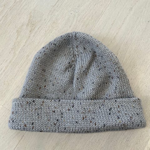 Håndstrikket marineblå lue i tynt garn. Luen sitter godt og tett på hodet og er myk og varm.