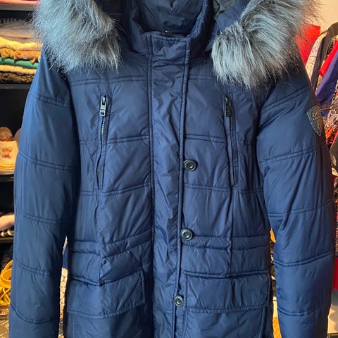 Varmt og elegant samtidig som passer i hverdagen, men også å hå over fin kjolen . Jakke er brukt bare en gang og fremstår som ny .