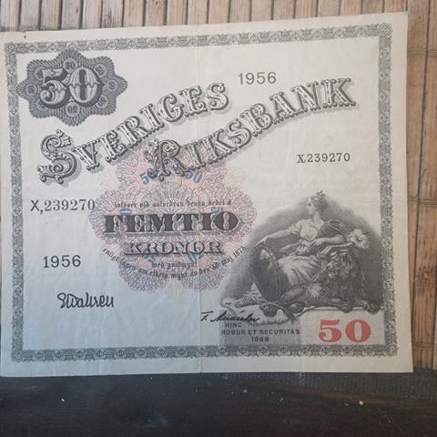 Selger gamle svenske sedler som gikk ut av sirkulasjon i 2015-2017. Kan kjøpes enkeltvis eller alle sammen!