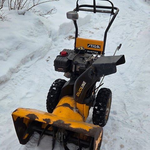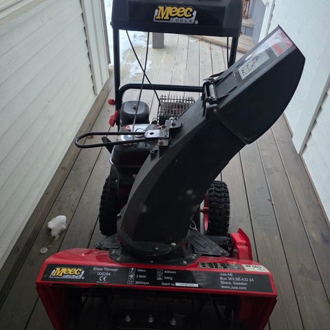 Snøskuffen er lite brukt. Har ligget i garasjen i mange år uten å være brukt
