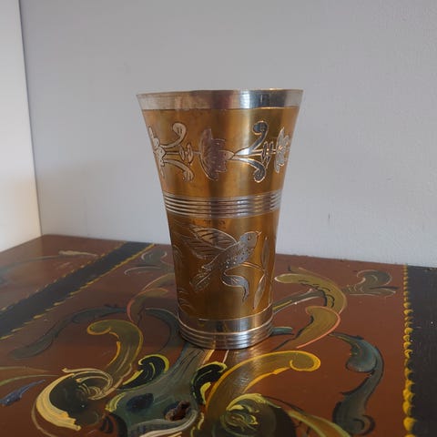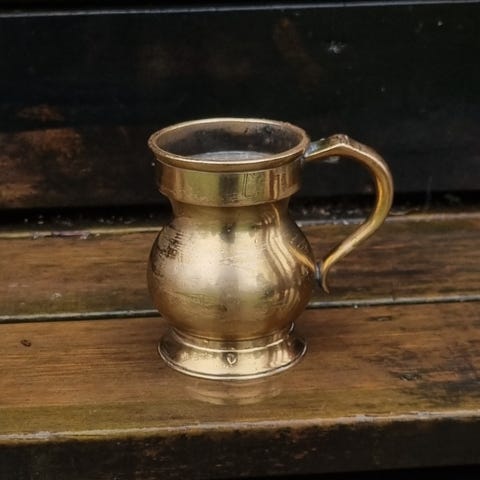 4 ølkurs i messing. Alder og produsent er usikker. God tyngde; hvert krus veier 300g.