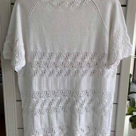Strikket i Gepard Wild and soft, 40% villsilke og 60 % merino. Strikket i dobbel tråd. Farge 172 Tobak.
