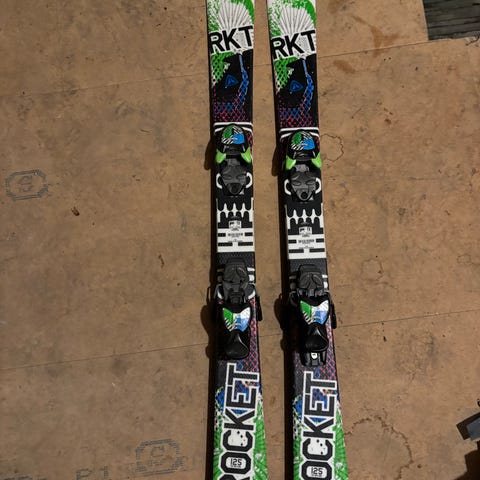 K2 Rocket ski med lengde på 125 cm. Ski med fargerik design i grønt, hvitt og blått. Egnet for alpinbruk.