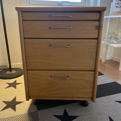 Skuffeseksjon til skrivepult. Ingen merker eller slitasje utenpå. Noen merker inni skuffene men har kun vasket lett med klut. Se bilder