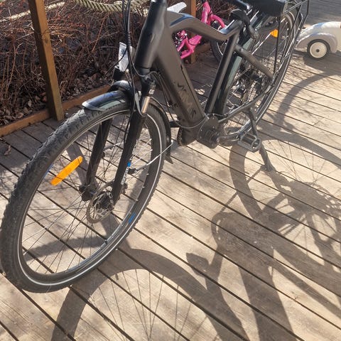 Den står på nesten nye piggdekk så er klar for vintersykling.