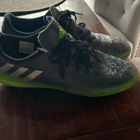 Adidas fotballsko i blå og svart farge. Skoene har knotter under for bruk på gressbaner.
