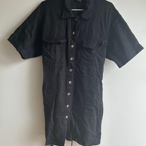 Lindex hverdagskjole med lommer i størrelse M, laget av viskose. Kjolen har svart farge
