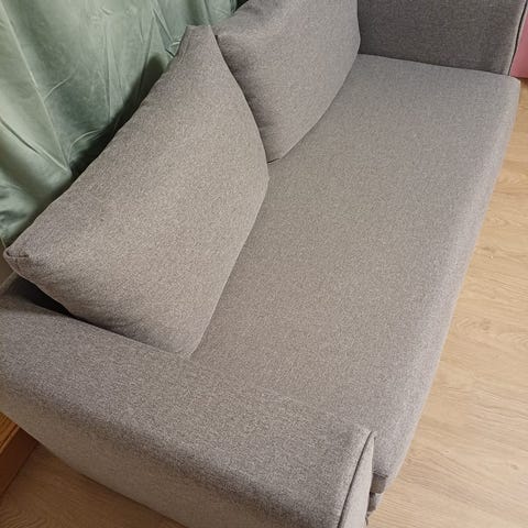 Sovesofa fra jysk selges svært lite brukt. Den har ingen bruksmerker og er så og si bare montert opp. Vi selger den fordi vi skal omgjøre gjesterom til babyrom. Nypris kr 3299. Farge offwhite med teddy stoff.