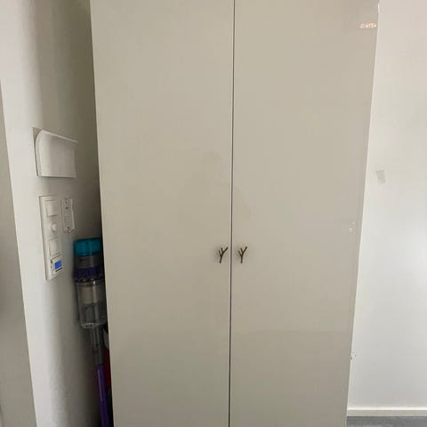 Oppbevaring til bad/ vaskerom med skap til skittentøy.